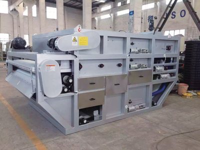 该设备通过一系列的辊及滚筒,将上下两层滤带张紧,夹在中间的污泥在滤带剪力的作用下,将污泥中的游离水不断挤出,从而完成泥水分离过程。脱水过程一般分三个阶段:重力脱水段,楔形预压榨段,中、高剪切脱水段。